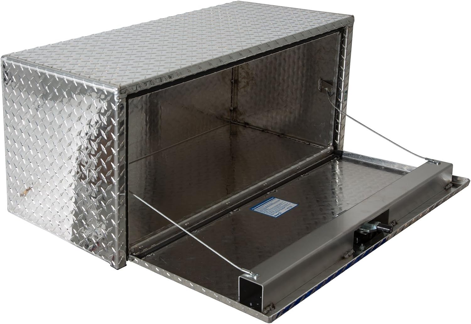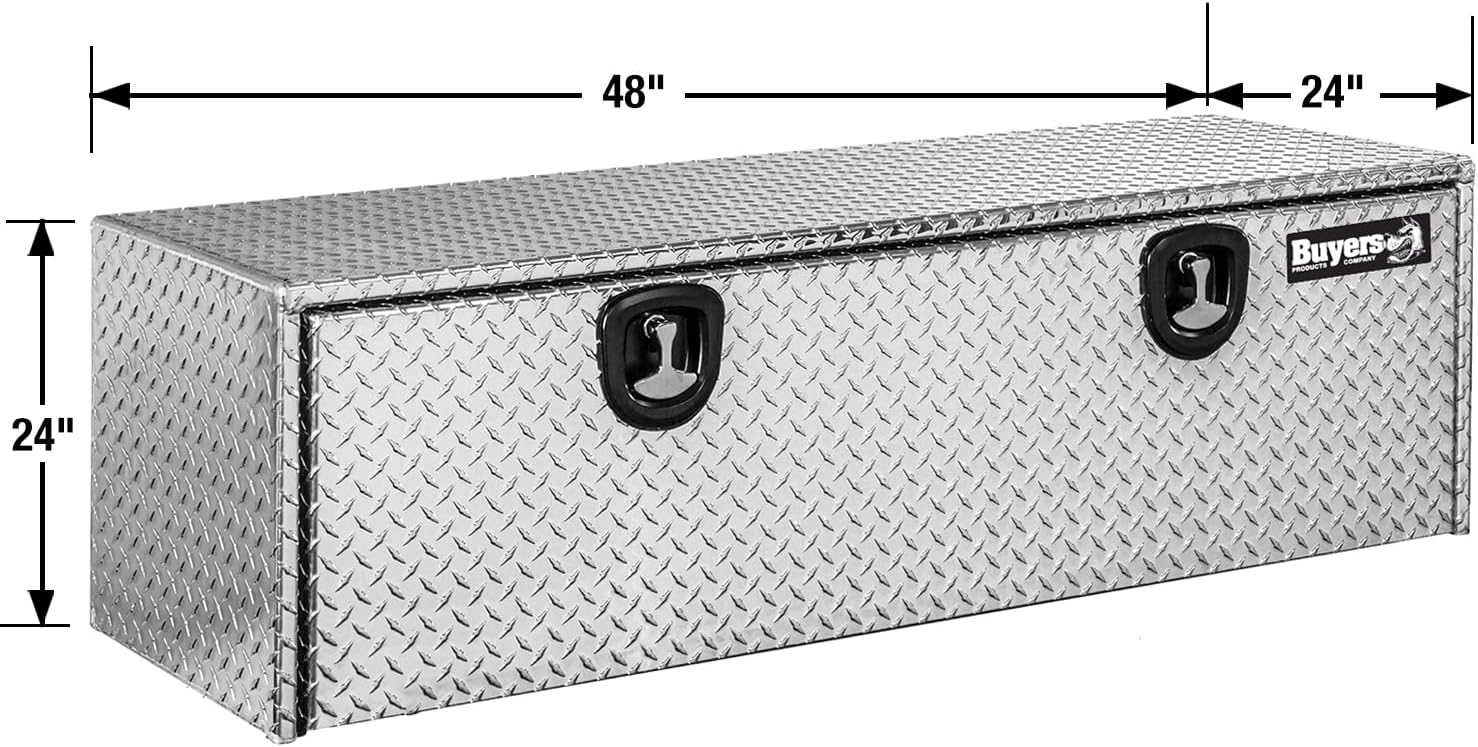 Protect and secure your equipment for the long haul with an underbed truck box that offers convenient, easy access on the job site. The Diamond Tread Aluminum Underbody Truck Box from Buyers Products is built to last with durable diamond tread aluminum and, on boxes 36 in. and wider, a structural door backbone. A reinforced, recessed drop door and a locking, die cast, compression latch system helps guard your tools from weather and theft. Units are built to perform for long life with aircraft grade cable lanyards, aluminum continuous hinges, and a watertight gasket system.