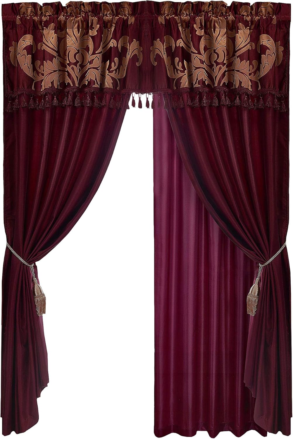 Gorgeous, rich two-tone purple/dark purple Jacquard Floral curtain set. Luxuriously sophisticated, this ensemble makes a dramatic statement in your bedroom.