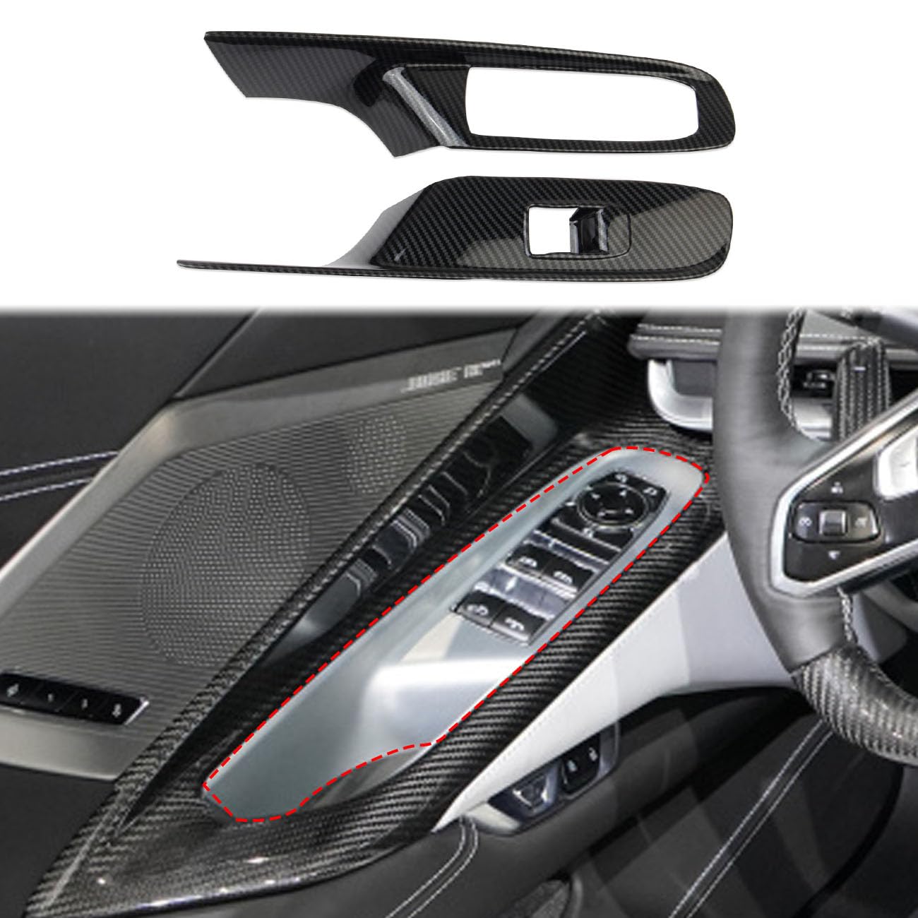Description : Compatible Model: For Chevrolet Corvette C8 2020 2021 2022 2023 2024Material: Made of high quality ABS plastic ,Three-layer processing:Background paint, pattern paint,Transparent UV in great finished (not Real carbon fiber). Installation: Veay Easy with Double-sided adhesive tape , first pls cleaning surface with alcohol,pour the alcohol over the cloth and wipe it with the cloth, will not damage the original car, second heat the tape by a hair dryer for better adhesion, last press it almost 1 minute. (3 Step) Very easy to remove: Pull item by one side, heat the tape by a hair dryer,Slowly wait the tape Stretch, than easy remove by hand.Package Include: 2PCS/SETAttention: this item was not the Real carbon fiber , we made them by ABS plastic, with Cross woven pattern, by great polishing process ,made exquisite effect Please check careful your Car Model and Year before your order. If you have any questions about fit ,model or installation or other , please contact us pleaes feel free let me know, if you are not satisfied with this item. We will reply to you within 24 hours. We will offer a replacement or refund (return item) in 30 days. If you have any questions about products, please feel free to contact us . We can develop more products, if you have a good design or idea, please contact us,Your suggestions are very valuable