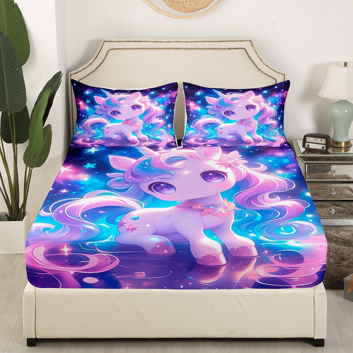 Size Information Twin size: 1 Fitted Sheet 39"Wx75"Lx16"H and 1 Pillowcase 20"Wx30"L. Full size: 1 Fitted Sheet 54"Wx75"Lx16"H and 2 Pillowcases 20"Wx30"L. Queen size: 1 Fitted Sheet 60"Wx80"Lx16"H and 2 Pillowcases 20"Wx30"L. Versatility We have many kinds of styles for you to choose. You can easily find a product that suits the style of your room. The item is not only suitable for your home, bedroom, guest room, living room, or rv, your families, friends, relatives, boyfriend, girlfriend. Modern Design The luxury aesthetic bedding set is made reactive printing and dyeing process. The pattern is clear, the color is bright, which will not fade after repeated washing. Personalized As a manufacturer of digital printed home textiles, we follow current trends and bring you the latest and stylish home textile products. The item will make the room decorated in exquisite taste.