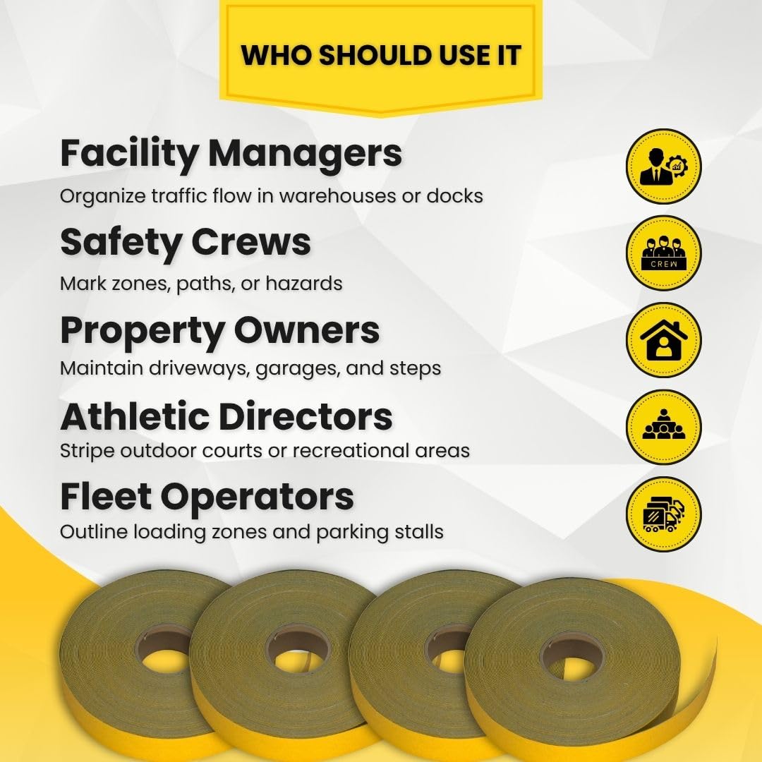Highly Visible, Heavy Duty Aluminum Foil Base Retro-Reflective Marking TapeThis tape is ideal for marking basketball, pickleball, and tennis courts, as well as, a variety of other applications. Often used in industrial or commercial applications to designate specific areas for safety and zoning. It can be used as a reflector on items that require additional visibility at night. This product is used by the City of Portland, Oregon to designate parking locations.This tape is an excellent alternative to paint. No dry time, fumes, or paint cleanup.Highlight and designate hazards, such as, uneven sidewalks or stair nosing on diamond plate, asphalt, concrete, pavement, and most other clean and dry temperate surfaces.A superior adhesive ensures this tape maintains a secure bond when properly installed to asphalt, pavement, concrete, and most other clean and dry temperate surfaces.Heavy Duty material promotes long lasting results.Conformable thick foil base and highly reflective glass bead surface reflects headlights or similar illumination. Designed with glass beads to provide traction, high visibility, and even nighttime visibility.Choose this highly reflective permanent pavement marking tape for its excellent durability. It will resist fading, chipping, and peeling much better than painted lines.Foil tape may be damaged by a stopped vehicle turning tires directly on its surface.MADE IN THE USA and distributed by ifloortape, a family owned, and operated company located in Keizer, Oregon.We also manufacture many products in custom shapes, sizes, and colors which are available in a variety of different material types with both durable or removable options. If you are unsure which product is best suited for your projects, please feel free to contact us. We would be happy to offer additional assistance and information or provide you with a sample.