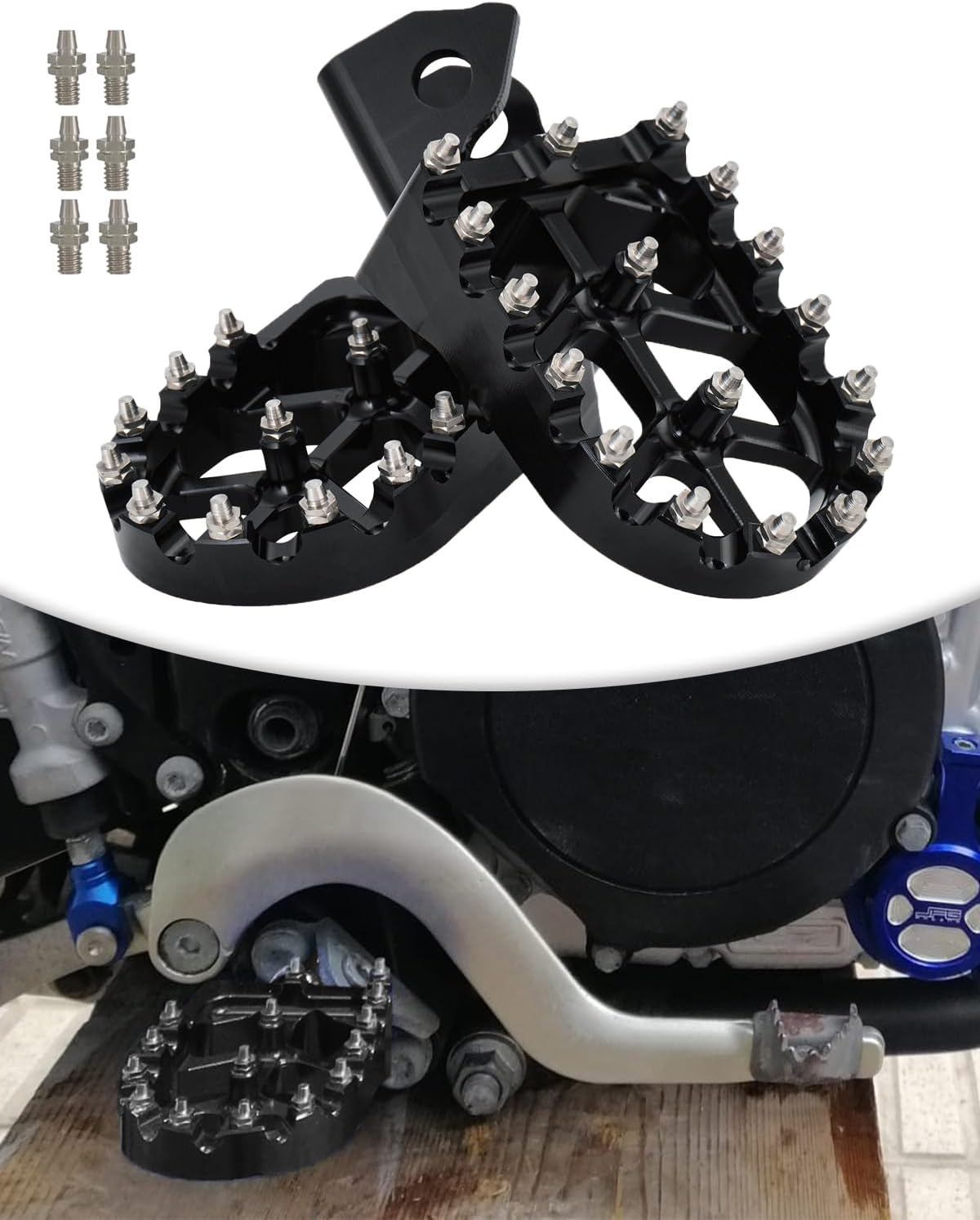 Fitment: For WR250R 2008-2020 For WR250X 2008-2011 NOTE If You Encounter Problems With Spring Orientation During Installation, Try Swapping The Left And Right Springs To Reinstall. Or Contact Us. Feature: The Motorcycle Foot Pegs Is Wider And Stronger Than The Original, Which Provides Better Support For The Driver. The Larger Force Area Also Makes The Foot More Relaxed. This Foot Pedal Is Designed For The WR250R And WR250X. With Its Beautiful Appearance And Metallic Feel, It Is The Perfect Replacement For The Old Foot Peg. The Foot Pedal Is Made Of Forged 6061 Aluminum Alloy, Which Has Very High Strength And Is More Impact Resistant Than Ordinary Foot Pegs. The Foot Pedal Is Processed By CNC Technology, And The Appearance Is More Exquisite. The Surface Is Anodized For A More Dazzling Color And Enhanced Erosion Resistance. Specification: Material: Forged Aluminum Alloy Product Weight: 0.568 lbs [ 266 g / pair ] Package Included: 1 Pair Motorcycle Foot Pegs. Installation Instruction Not Included.