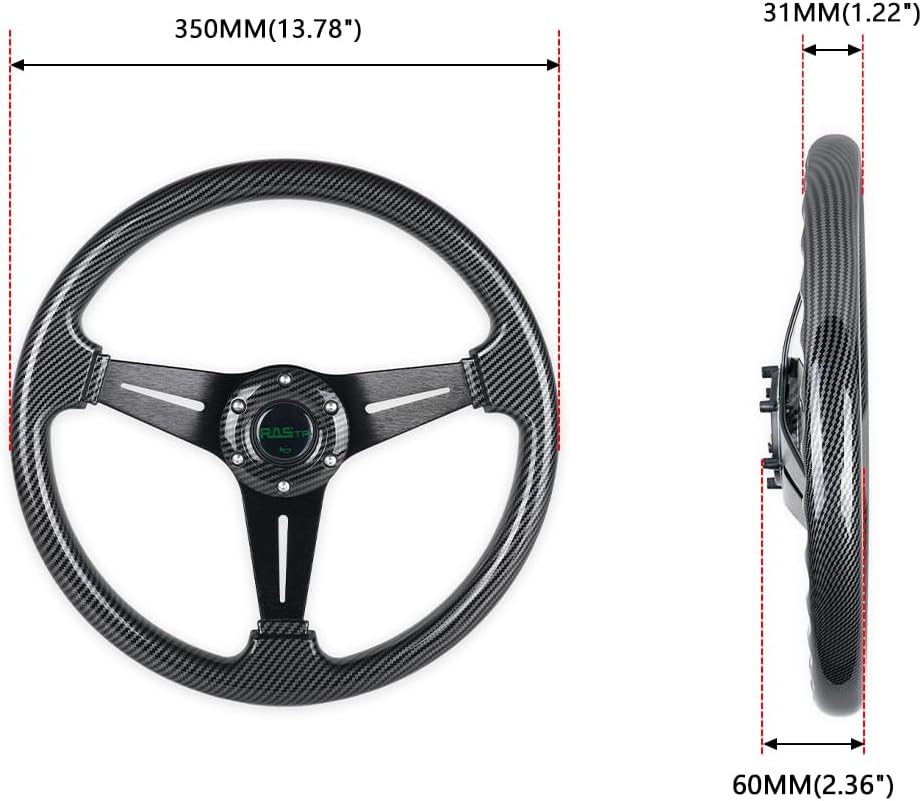 RASTP Universal Racing Steering Wheel, 13.8''/350MM 6 Bolts ABS Steering Wheel