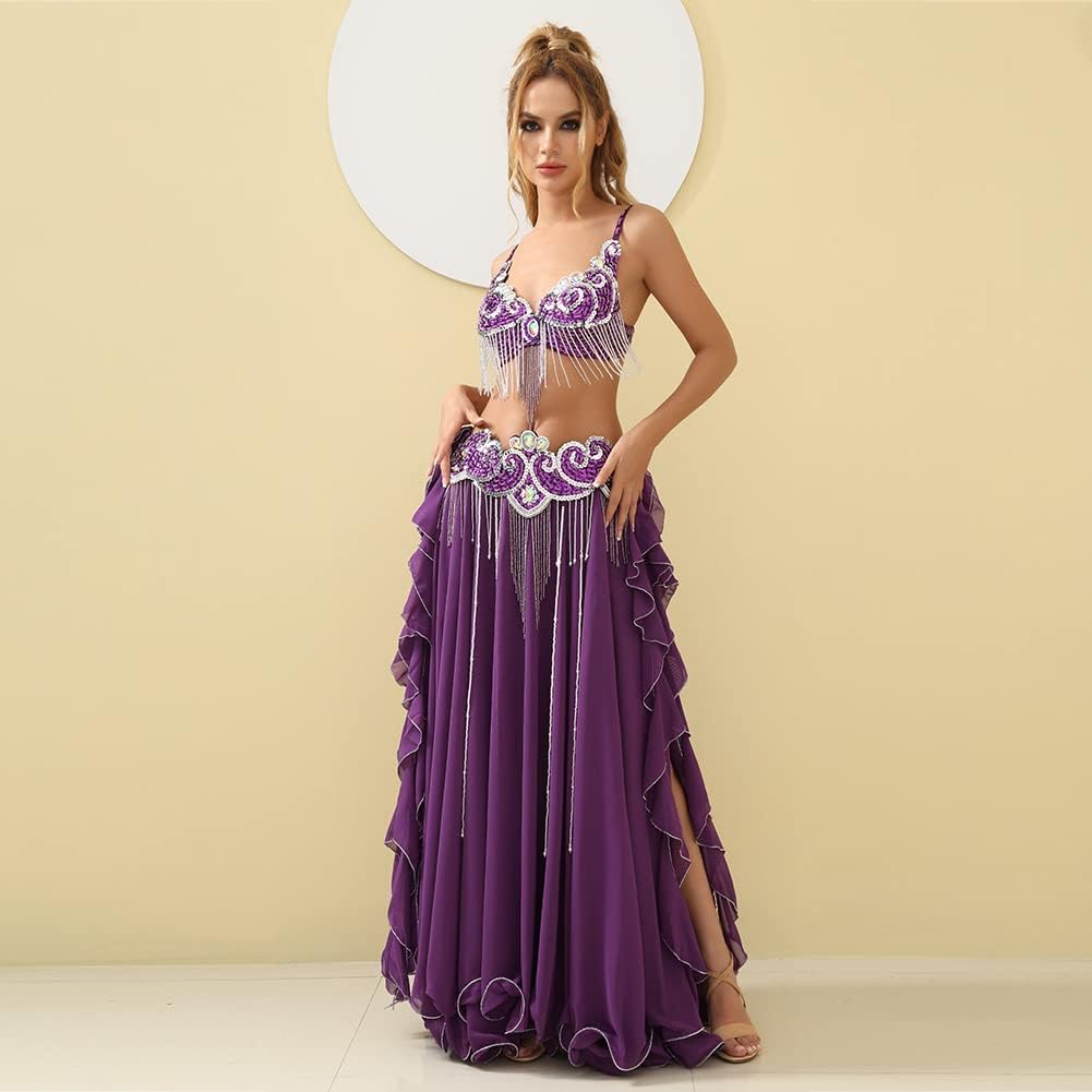 ROYAL SMEELA Belly Dance Costume Set for Women Belly Dance Bra and Belt Chiffon Dancing Skirts Professional Outfit 3pcs
