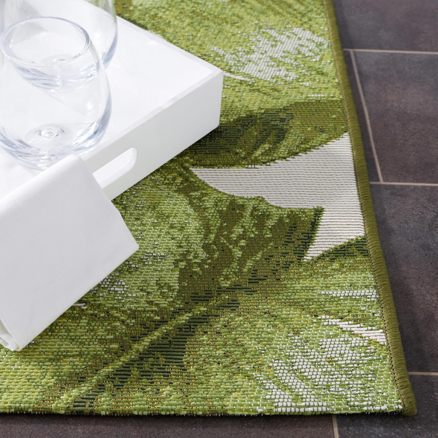 Create your own tropical paradise with the vibrant indoor/outdoor Barbados rug collection. Use in the backyard, patio, poolside or sunroom to brighten up outdoor gatherings, or use indoors to add a breezy island vibe to any room. These unique visually delightful rugs are kid and pet-friendly and weather-resistant to ensure carefree enjoyment in any climate.