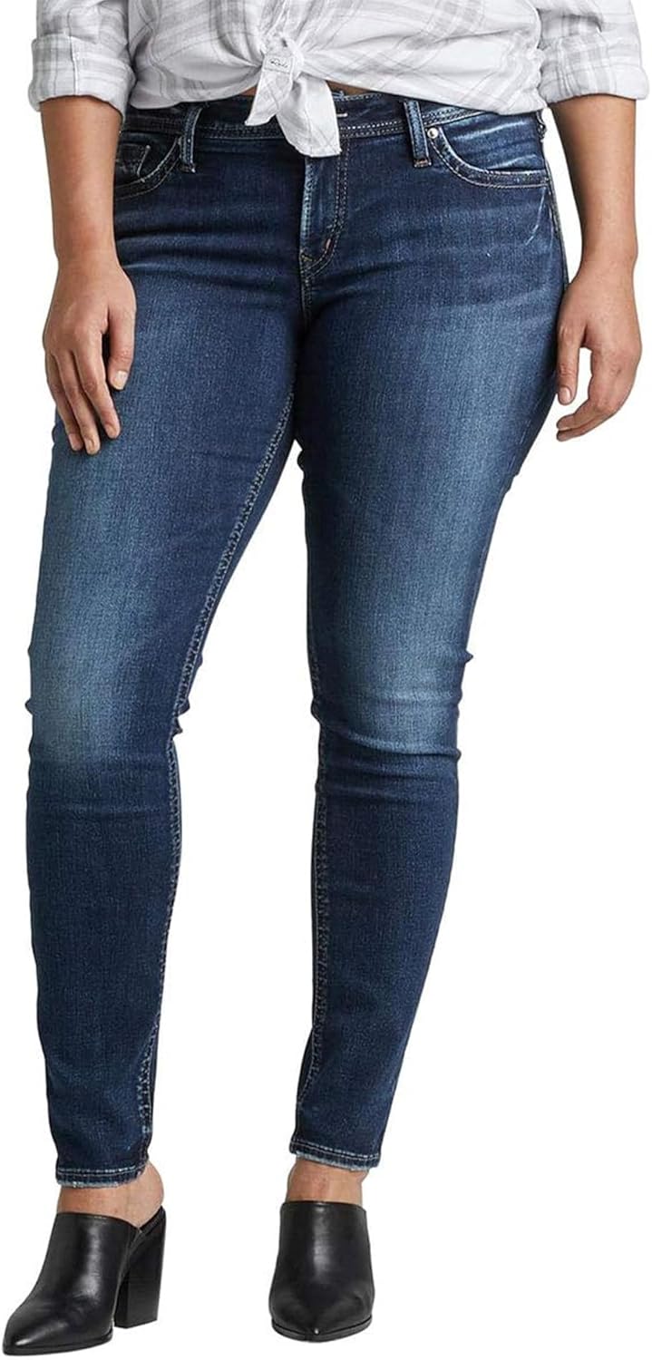 Silver Jeans Co. Suki Mid Rise Skinny Jeans Plus Size - Suki is our best-selling curvy fit for good reason. Designed to enhance curves, Suki creates a flattering silhouette with ease in the hip and thigh to hug every angle. The classic mid rise is comfortable and the contoured waistband ensures a zero-gap fit.