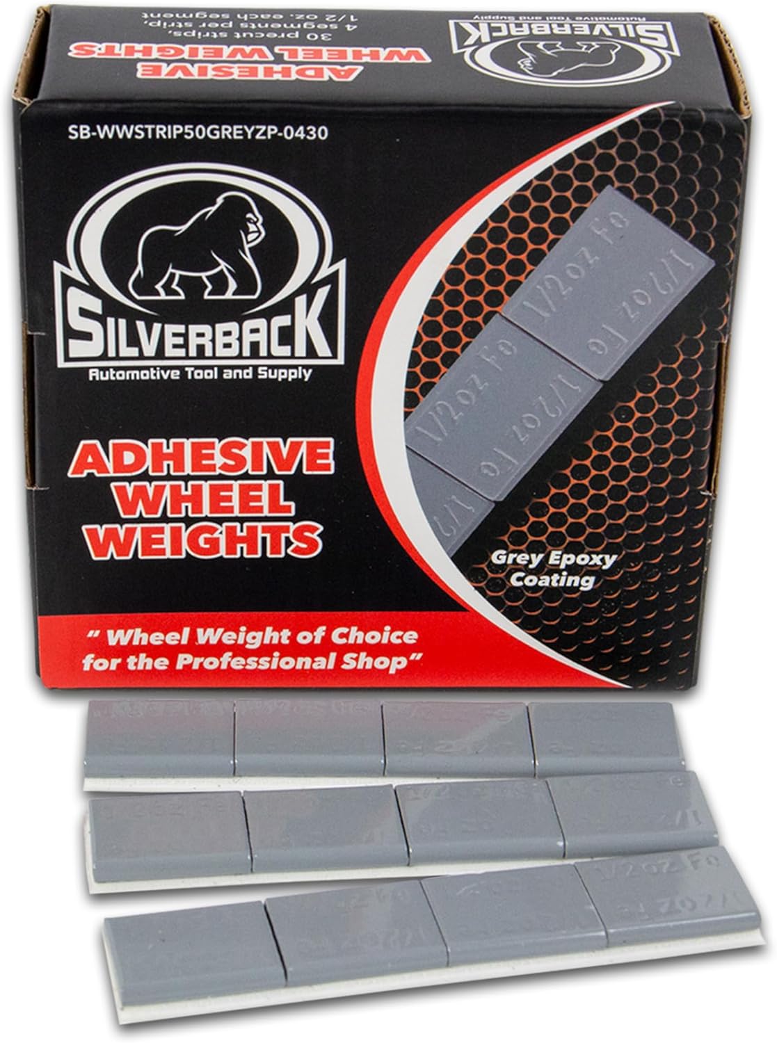 Achieve a safe, balanced and smooth ride with Silver Back's steel adhesive tape wheel weights. The Silverback high quality steel adhesive tape weights are a cost effective and environmentally friendly choice for wheel balancing. These adhesive tape wheel weights are engineered and manufactured to provide precise and consistent balance for your vehicle’s wheels. They come in a variety of coatings and colors. The grey epoxy coating is the most corrosion resistant coating available for steel wheel weights. The premium grey epoxy coating also has excellent corrosion resistance using a premium Epoxy blend. These weights integrate discreetly with the wheel’s surface achieving a clean, unobtrusive appearance.